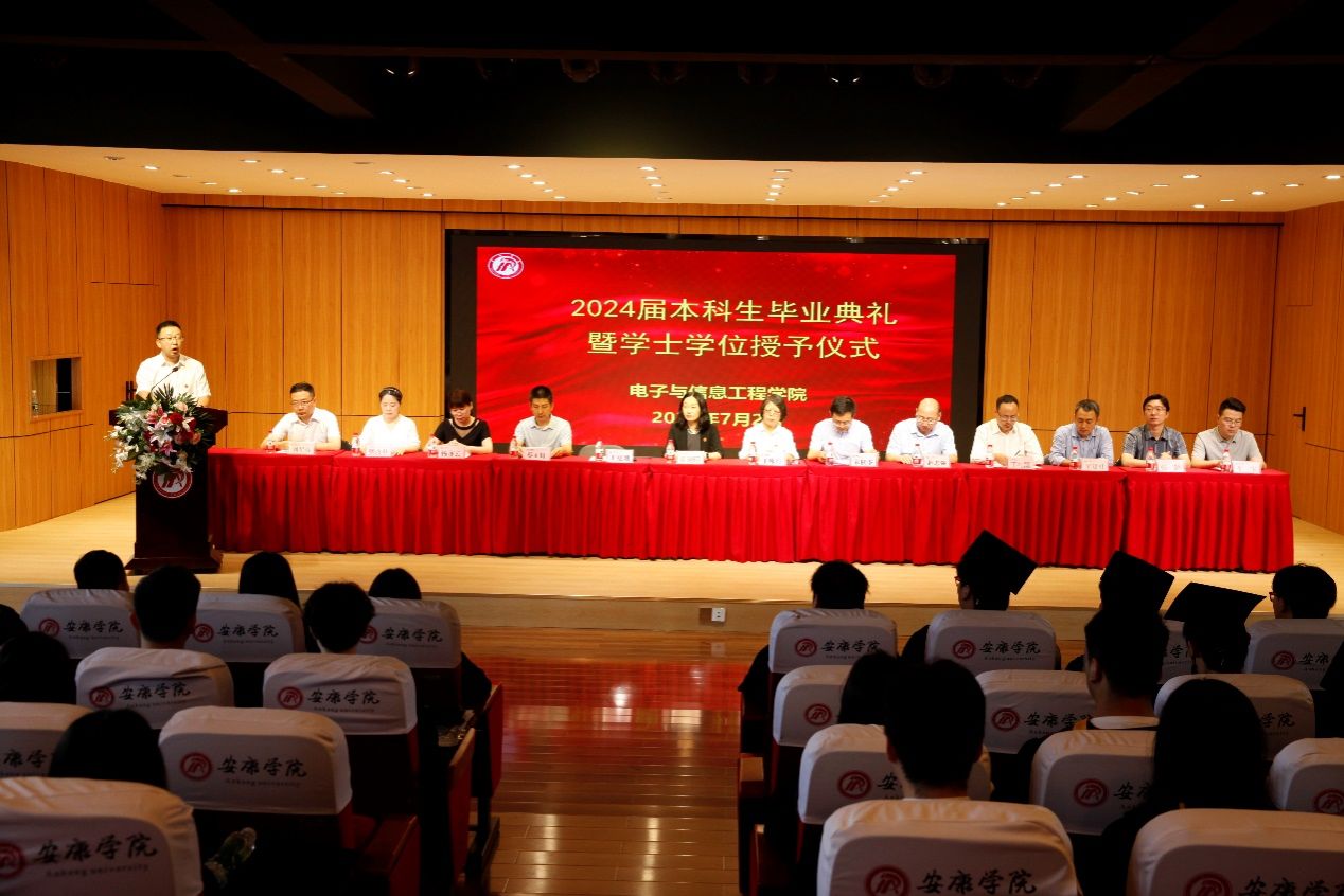 七月的万象城娱乐awc线路,有骄阳和蝉鸣,也有告别和再出发,更有比盛夏更炽热的篇章。7月2日上午,电子与信息工程学院2024届本科生毕业典礼暨学士学位授予仪式在江北校区1401教室隆重举行。副校长崔晓明、学院党总支书记于咏梅、副院长王克刚、宋权华、党总支副书记蔡正旺、系主任,教师代表、辅导员和2024届毕业生200余人参加了典礼。典礼由万象城娱乐awc线路党总支书记于咏梅主持。
