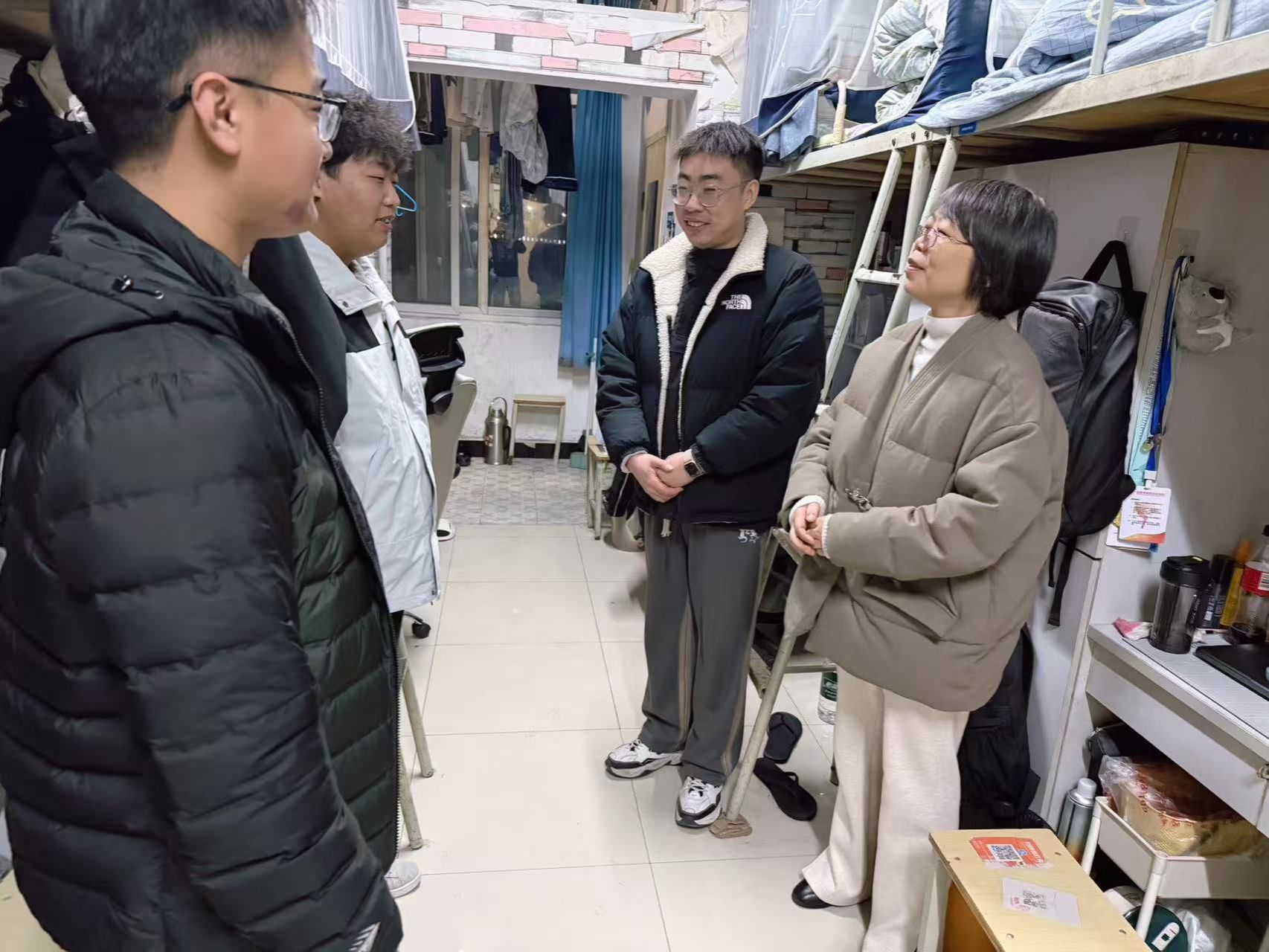 新学期伊始,为及时了解学生的学习生活状况,传递学院的关怀与温暖,万象城娱乐awc线路党总支书记于咏梅带领全体辅导员,于2月16日晚深入学生宿舍,开展了走访慰问活动。