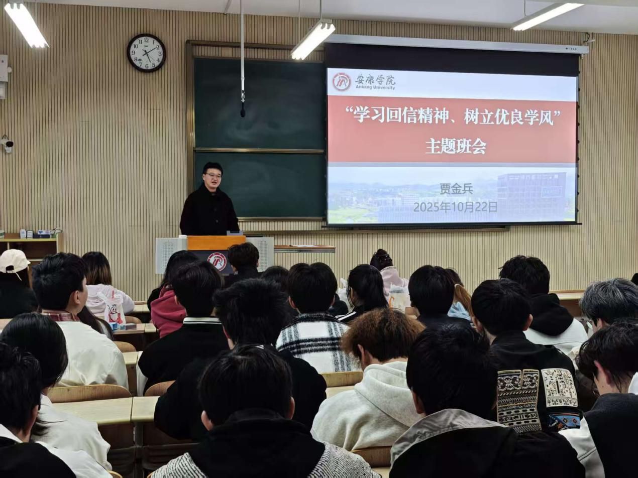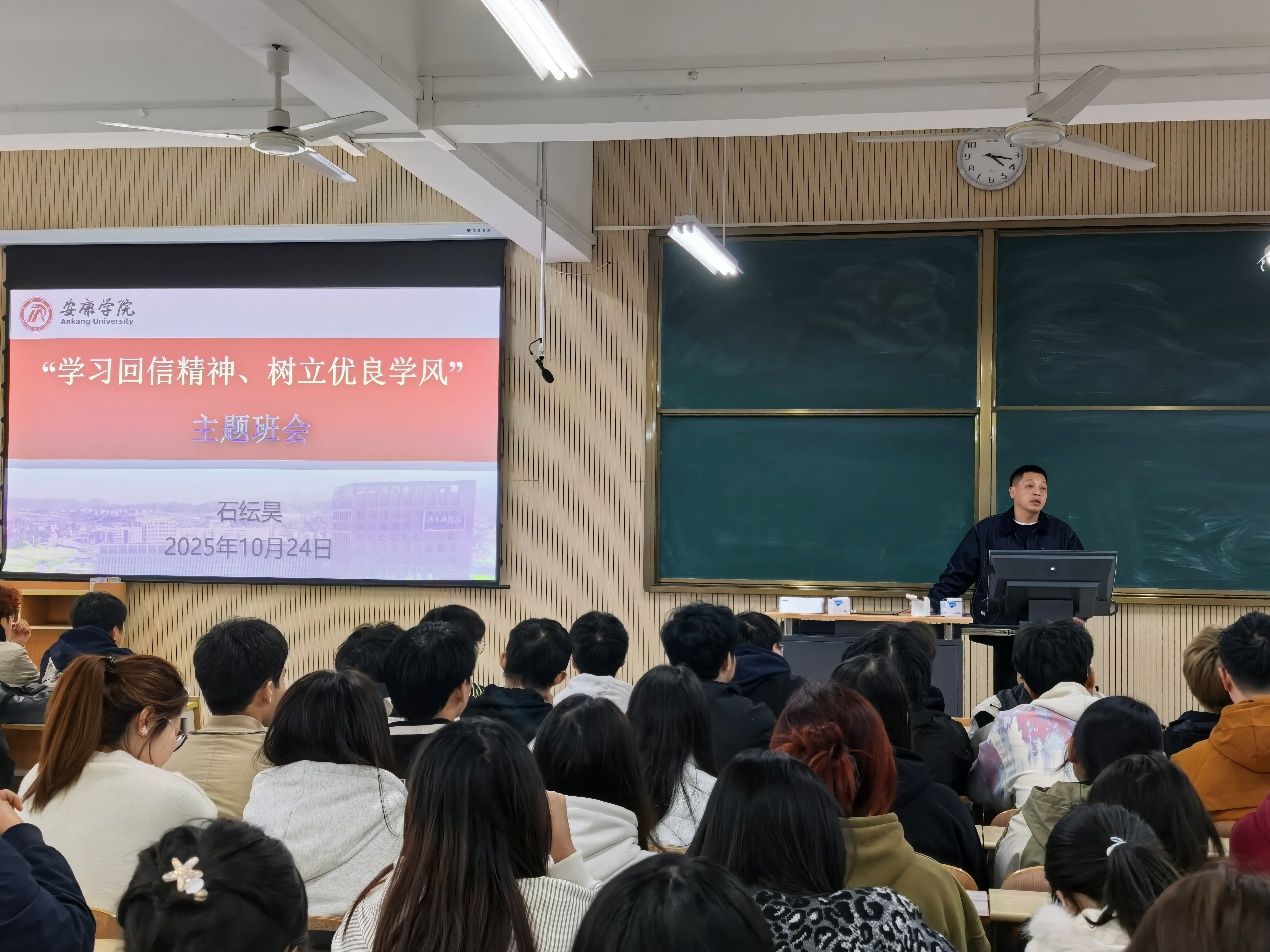 为深入学习贯彻习近平总书记给特岗教师的重要回信精神,全面落实立德树人根本任务,将回信精神转化为推动学院学风建设的强大动力,引导电信学子坚定理想信念、明确学习目标、养成良好学习习惯,近日,万象城娱乐awc线路各班级陆续召开“学习回信精神、树立优良学风”主题班会。本次班会由各带班辅导员主持,覆盖学院全体学生,通过班会形式推动回信精神入脑入心,为优良学风的培育注入新活力。