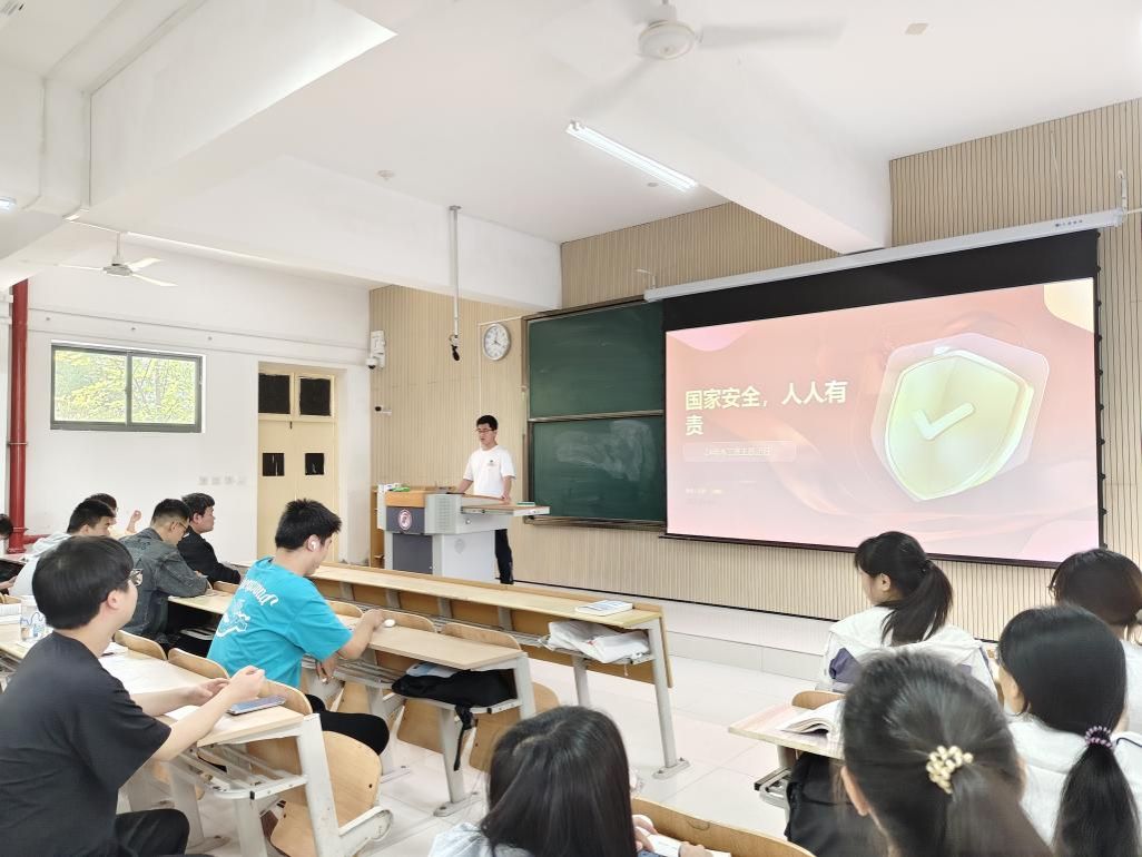 在主题班会环节,各班团支书借助精心制作的PPT,以生动的视频、鲜活的案例为切入点,为同学们详细解读国家安全知识。同学们围绕“如何在日常生活与学习中维护国家安全”展开热烈讨论,各抒己见,现场气氛十分活跃。大家深刻认识到,维护国家安全并与每个人的生活息息相关,每个人都应当成为国家安全的坚定守护者。
