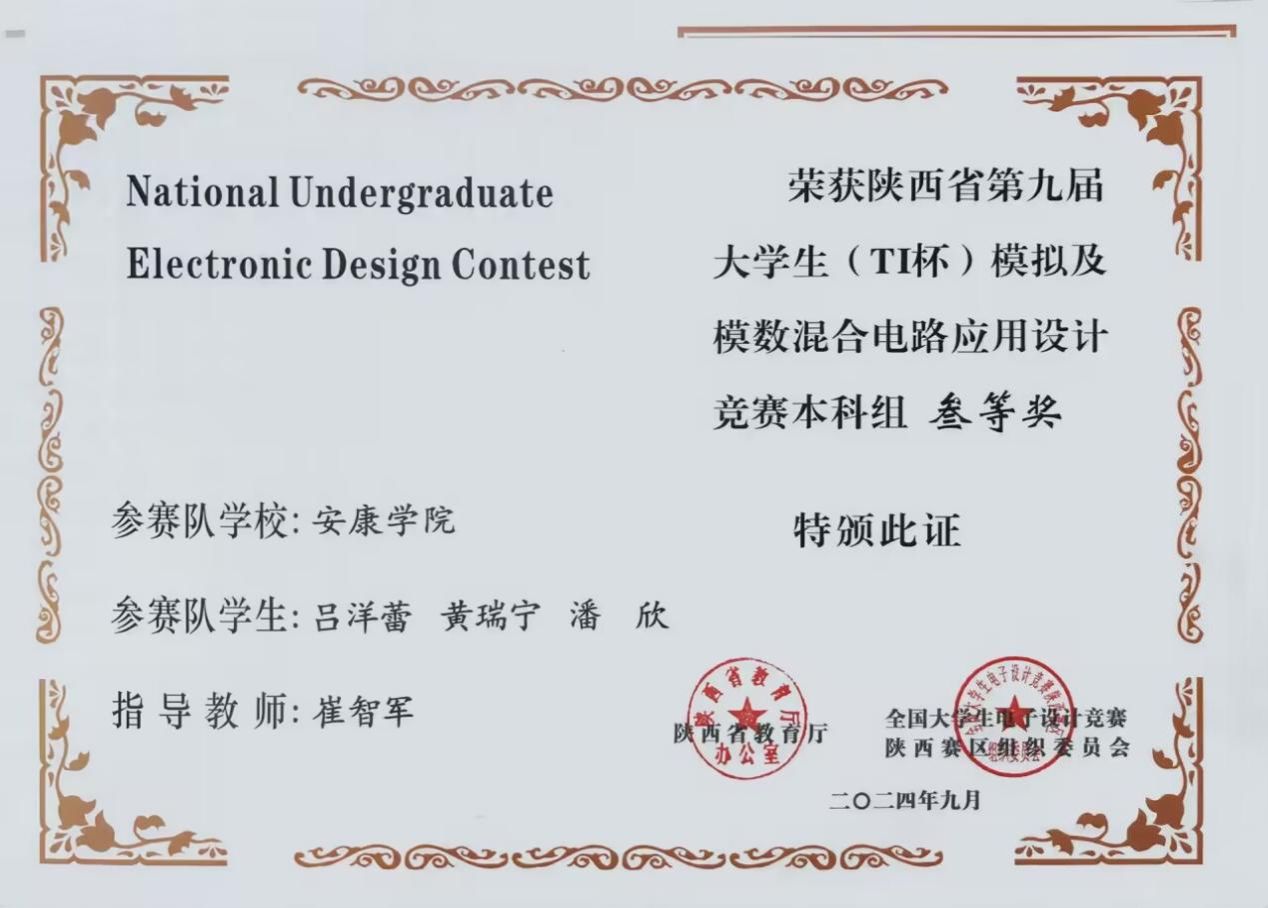 近日,陕西省教育厅、全国大学生电子设计竞赛陕西赛区组织委员会公布了2024年全国大学生电子设计竞赛陕西区赛(暨陕西省第九届大学生模拟及模数混合电路应用设计竞赛)获奖名单,万象城娱乐awc线路学子获得了本科组三等奖。