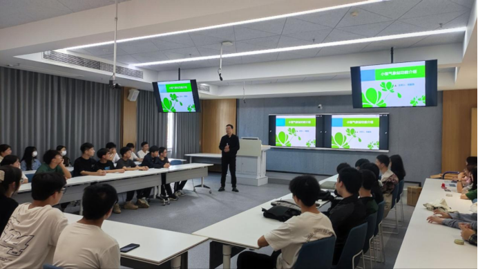 活动开始,由AI物联协会的指导老师刘星亮老师为同学们讲解小型气象站的功能,以及各传感器的工作原理,重点介绍了利用4G网络和GPRS技术实现小型气象站的设计方案,最后展示了利用云服务器搭建数字化展示平台的方法。