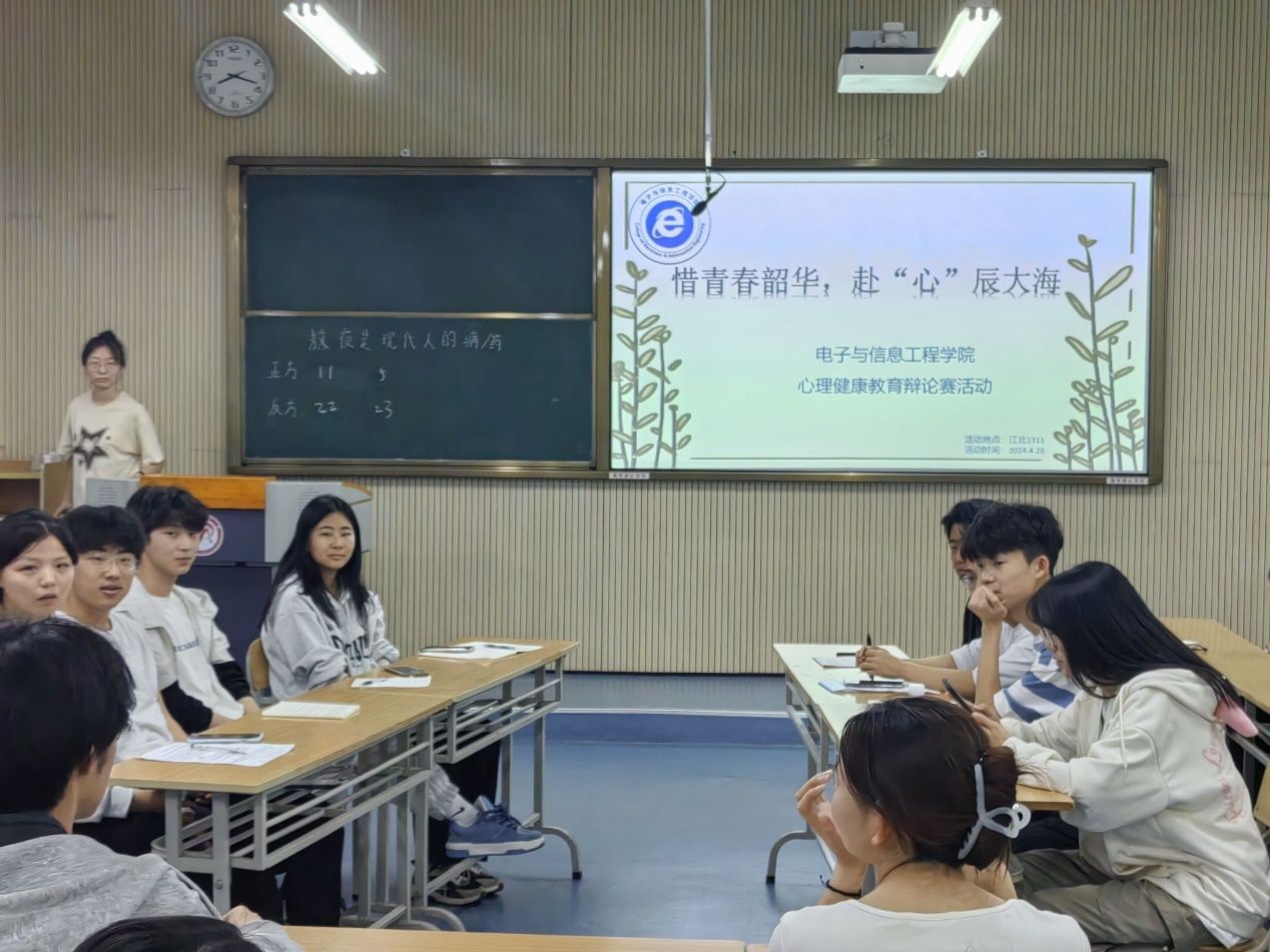 为提高大学生的心理健康水平,增强大学生的心理保健意识,让更多的人来关注大学生的心理健康问题,让更多的人意识到心理健康问题的重要性,近日,电子与信息工程学院在江北校区1311教室举办“辩由心声,论由心言”为主题的辩论赛。