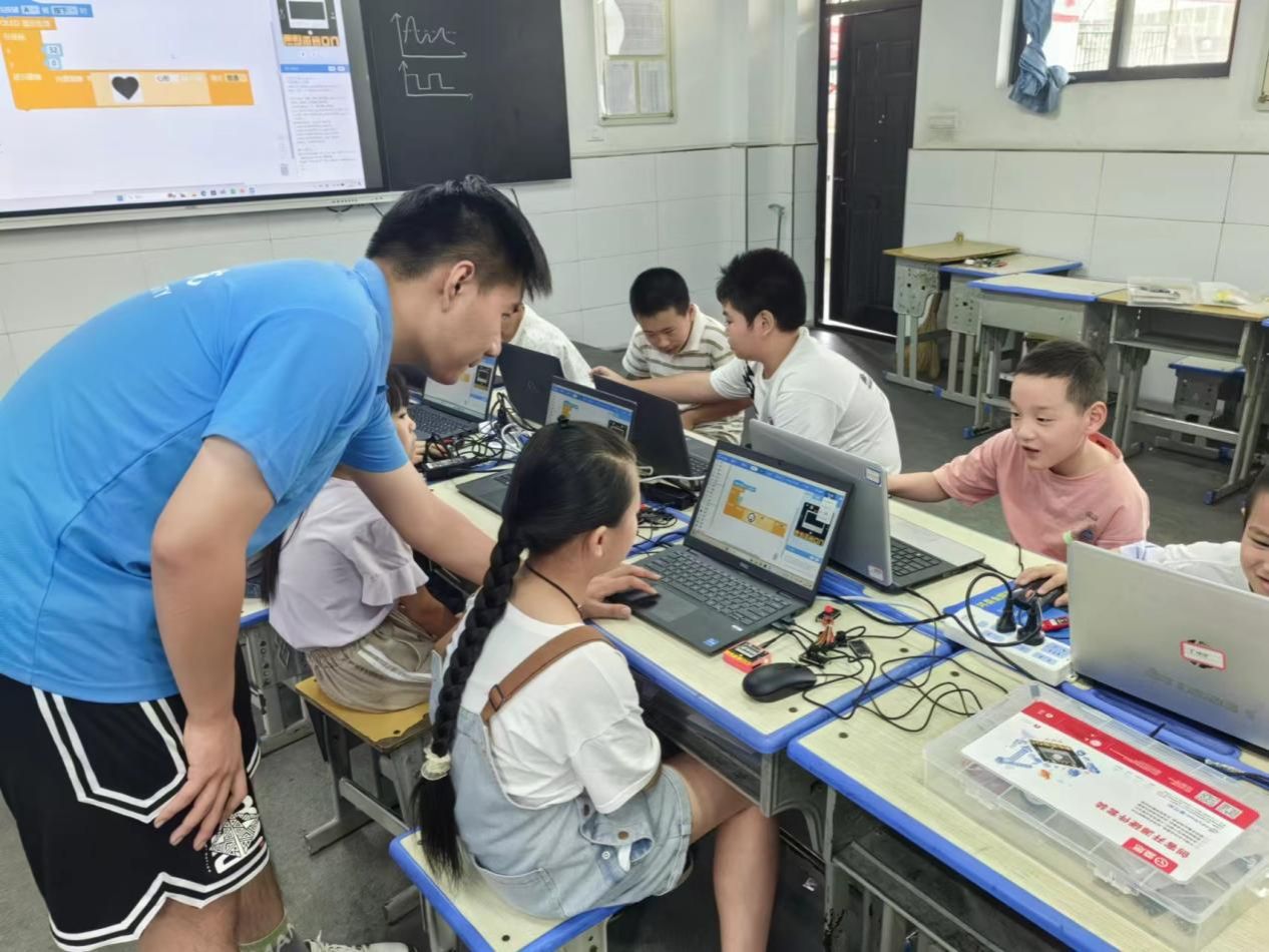 为迎接中华人民共和国成立75周年,深入学习贯彻习近平总书记关于“三农”工作的重要论述和“走进社区、走进乡村、走进基层”的志愿服务重要指示精神,落实共青团中央在全国范围内组织开展的2024全国大学生“乡村振兴·青春笃行”计划,7月5日,电子与信息工程学院团总支书记张宇航带领学院互联创未来实践团队走进白河县茅坪镇中心小学和宋家镇中心小学,开展以“编”织梦想 “程”就未来为主题的暑期志愿服务活动。互联创未来实践团队以云山智童支教队为主体,通过为期5天的少儿编程科普课程,使乡村的孩子们系统学习少儿编程,提高其思维能力、计算能力和创新能力。