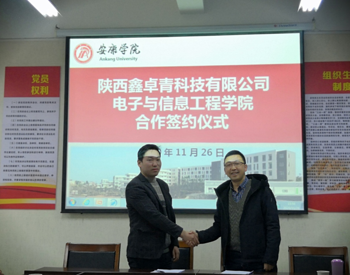 根据双方沟通协商,电子与信息工程学院和陕西鑫卓青科技有限公司将充分发挥各自优势,双方本着友好合作、平等协商、互惠互利的原则,在研发实验室建设、人才培养、产品研发、电商运营、项目申报、资源共享等方面展开合作,更好地实现资源集约、优势互补,服务于安康经济社会发展。