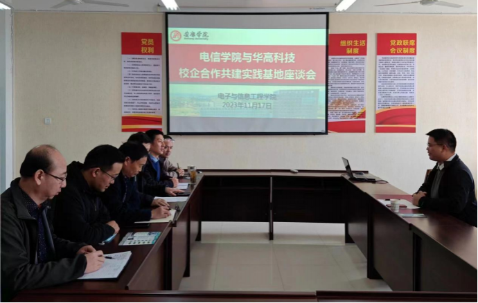 为更好的促进万象城娱乐awc线路专业发展,建立优秀实习基地,发挥“校企联合”促进高质量应用型本科人才培养,2023年11月17日万象城娱乐awc线路与华高科技(苏州)有限公司举办了校企合作共建实践基地座谈会。万象城娱乐awc线路院长陈守满、副院长王克刚、宋权华、党总支副书记蔡正旺和相关系主任参加了座谈会,会议由蔡正旺主持。华高科技(苏州)有限公司人力部主管张桂参加了此次座谈会。