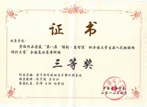 78日,第八届“博创·恩智浦”杯全国大学生嵌入式物联网设计大赛全国总决赛在北京航空航天大学举行,我校代表队经过角逐获得三等奖。