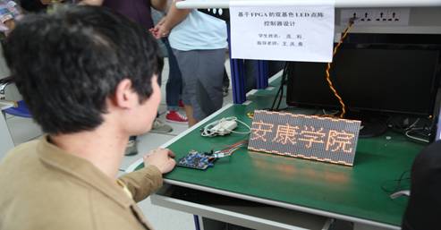 答辩学生演示自己制作的LED显示屏