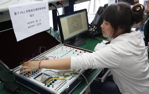 答辩学生演示自己设计的智能交通控制系统