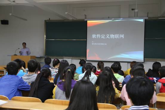 44下午,97级校友、高级工程师王一为电信系师生做了一场题为“软件定义物联网”的精彩学术报告,整个会场座无虚席。报告会由计算机应用教研室主任付争方副教授主持。