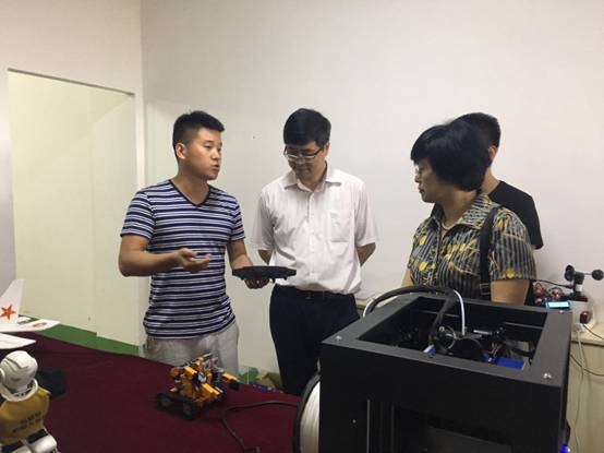 6月15日,省科技工委委员、科技厅副厅长兰新哲,总工程师杨柳带领相关职能部门干部一行7人莅临省级创新创业教育改革试点学院,电子与信息工程学院的“云物大智”创客坊考察调研指导工作,我校党委书记王国良、党委副书记胡波随同考察调研。