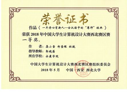 万象城娱乐awc线路学生在全国大学生计算机设计大赛西北赛区的获奖名单