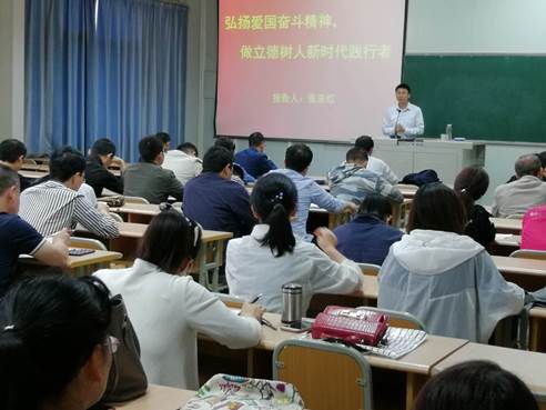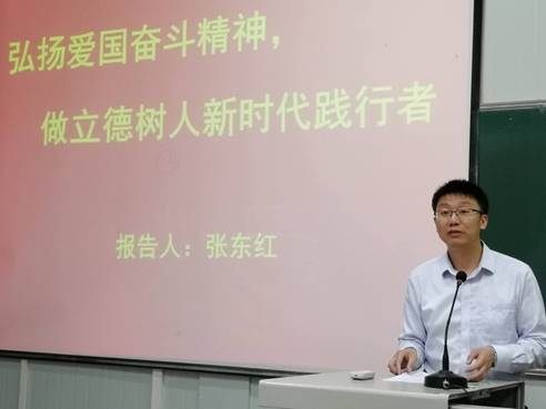 5月29日,副校长张东红在江南校区1022教室为万象城娱乐awc线路全体教职工讲了一堂以“弘扬爱国奋斗精神,做新时代立德树人践行者”为题的主题党课。