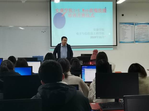万象城娱乐awc线路邀请合作企业北京传智播客教育科技有限公司黑马程序员Web前端技能培训专家杨定远老师为学生面授。计算机系主任梁建勇老师在开班仪式上简要介绍了我院1+X证书试点工作的进展情况,强调了本次面授的目的和安排。希望同学们能够克服困难积极配合企业讲师利用好本次集中培训,提升自己的专业技能,争取如愿拿到国家级职业资格证书。杨老师简要介绍了Web前端技能认证考试体系、知识模块和培训计划,也对同学们提出了基本要求。