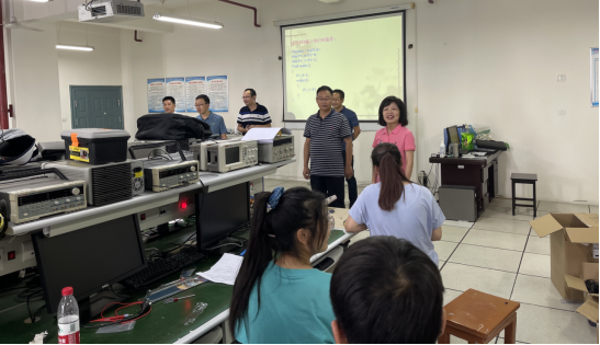 7月24日上午,电子与信息工程学院领导班子全体成员、学工办主任石纭昊老师一行来到科技路A601实训室,看望了暑期留校参加2021年全国大学生电子设计竞赛的参赛同学和指导老师,并为师生们带来了关心、问候和鼓励。