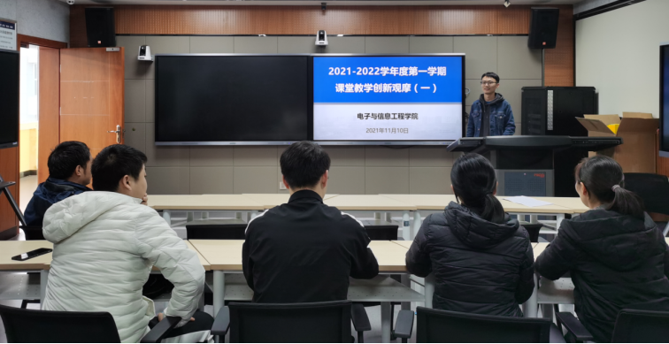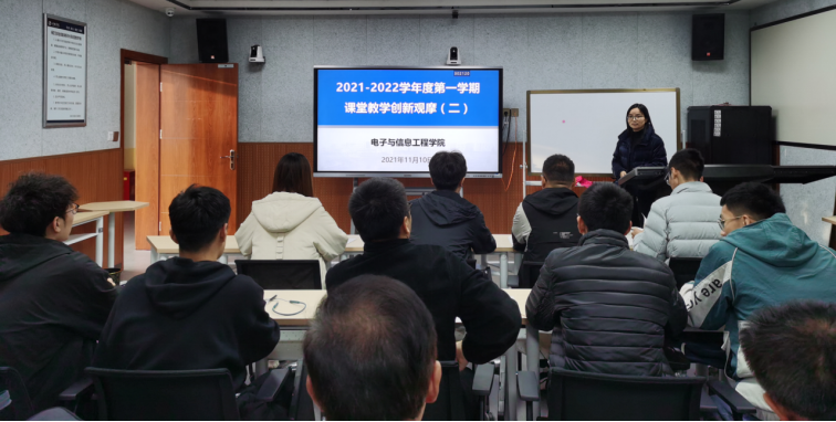 为深入推进课堂教学改革创新,鼓励青年教师创新教学模式,切实提升人才培养质量,11月10日下午,电子与信息工程学院在师范生职业技能训练中心4201、4204教室举办教师课堂教学创新观摩与研讨活动,学院院长陈守满教授、学校教学督导梁俊龙老师、全体无课教师以及部分学生共40余人参加了此次活动,活动由学院副院长宋权华主持。