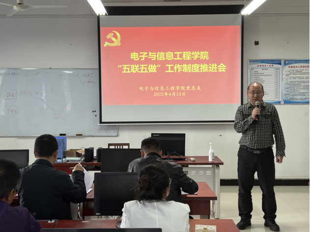 会议伊始,万象城娱乐awc线路院长陈守满组织学习了《电子与信息工程学院五联五做工作制度》。陈守满就该项制度的主要内容作了详细介绍。一是党总支委员联系党支部制度,做党建工作的引路人。党总支委员每人至少联系一个党支部,推动落实党的组织生活制度,同时加强调研指导,以点带面推动党支部的党建工作不断提升;二是学院领导联系系(教研室)制度,做教学科研管理服务带头人。进一步改进学院领导干部工作作风,促进领导干部密切联系群众,加强教育教学管理,督促指导基层工作,增强领导与各系(教研室)之间的交流与沟通,着力推进教学科研工作和教育教学改革工作,促进教学质量提高;三是教工党支部联系学生党支部制度,做学生党员成长的呵护人。通过建立教职工党支部联系学生党支部工作制度,搭建互动交流、关爱呵护的平台,努力营造“党建育人”的良好氛围,不断提升教职工党员联系服务学生党员的意识和能力,进一步提高学生党支部建设的规范化、科学化水平;四是教工党员联系学生制度,做学生全面发展的帮扶人。树立良好的师德师风,关心学生的全面发展,在本科生人才培养方面建立务实、管用的党建工作机制,促进大学生全面成才,不断加强教工支部内涵建设。五是学生党员联系学生班级和宿舍制度,做学生圆梦的陪伴人。发挥学生党员的先进性作用,以每位学生党员联系学生班级和宿舍的方式,加强与同学之间的联系,帮助同学树立正确的世界观、人生观和价值观,促进学生自我教育、自我管理和自我服务,使学生养成良好的学习、生活习惯,为今后的成长成才奠定坚实的基础。