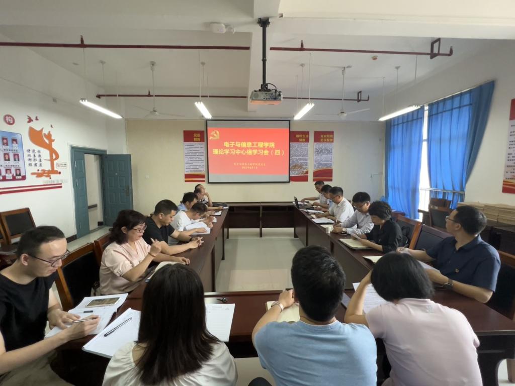 6月1日下午,电子与信息工程学院理论学习中心组举行2022年第四次政治理论学习,中心组全体成员参加学习会,副校长张东红全程旁听指导此次学习会,党总支书记于咏梅主持会议。