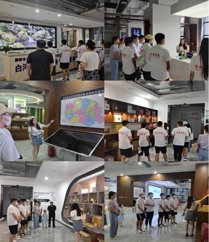 7月11日,调研团队来到白河县电子商务公共服务中心参观调研,首先,团队成员与中心负责人共同观看了《白河县电子商务进农村综合示范项目建设工作纪实》纪录片,纪录片中介绍了电商进农村项目建设所取得的成绩,以及白河县在电子商务影响下的飞速发展。随后,服务中心展厅工作人员带领调研团队成员参观了展厅并详细介绍了展厅陈列的产品。紧接着,团队成员与电商服务中心领导及工作人员进行了调研座谈。万象城娱乐awc线路白河小分队负责人介绍了此行的目的;电商服务中心卫红波主任介绍了白河县电商发展情况,并对电商进农村项目做了重点介绍;头条传媒白河地区负责人胡平老师进行了电子商务实践经验分享,秦楚优品负责人聂文斌老师分享了电商团队建设经验,服务中心阮健老师介绍了自己抖音直播带货的经验,同时,三位老师耐心解答了同学们提出的问题;最后,服务中心副主任张卫主任和同学们交流了电子商务工作经验心得,并建议同学们要勇于尝试、了解新事物,要坚定信心努力学习电子商务知识。通过这次座谈会,同学们对电子商务有了更准确的了解,不懂的问题也有了相应的解答,同时也坚定了努力学习专业知识的信心。