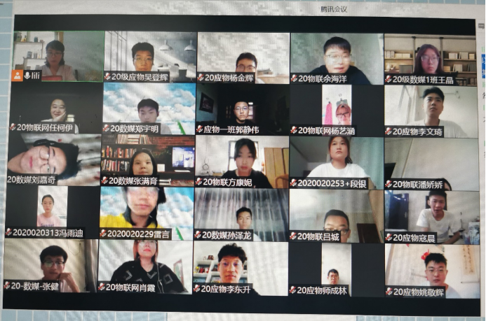 9月9日,万象城娱乐awc线路2020级物联网工程、数字媒体技术、应用物理三个专业召开了线上新学期班会,班会围绕“珍惜韶华、不负青春、锤炼本领”主要内容展开,班会由辅导员成英丽老师主持。