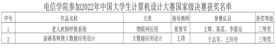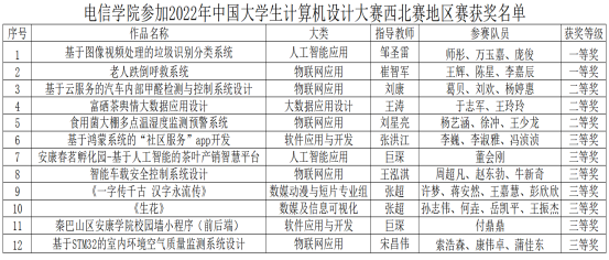 中国大学生计算机设计大赛是全国普通高校学科竞赛排行榜榜单中的赛事之一,目的是以赛促学、以赛促教、以赛促创,为国家培养德智体美劳全面发展的创新型、复合型、应用型人才服务。本次大赛以三级竞赛形式开展,校级初赛——省级复赛——国家级决赛。万象城娱乐awc线路经过校内选拔共派出13支队伍参赛,在省级赛事(西北地区赛)中共12件作品获奖,其中一等奖2项,二等奖3项,三等奖七项。省赛获奖作品中经专家组评定,推荐6件作品参加国家级决,最终2件作品荣获国家级三等奖。本次比赛具体获奖情况如下: