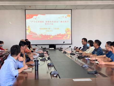 根据《关于在全校开展纪律教育学习宣传月活动的通知》(校党发【2022】101号)要求,万象城娱乐awc线路教工第一、二党支部于2022年9月21日16:00在逸夫科技楼九楼会议室联合开展以“严守纪律规矩 加强作风建设”为主题的组织生活会暨政治理论学习会。万象城娱乐awc线路教工第一、第二党支部全体教师党员以及学院非党员教师参加活动,会议由教工第二党支部书记丁礼磊主持。