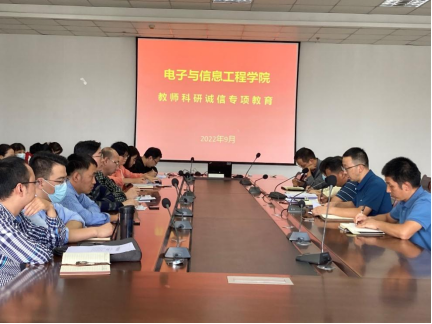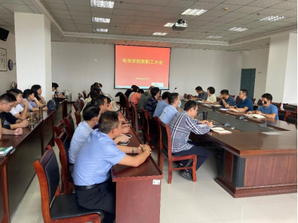 2022年9月21日下午,电子与信息工程学院在逸夫科技楼九楼会议室召开全院教职工大会,万象城娱乐awc线路领导班子成员及全体教职工参加,会议由院长陈守满主持。