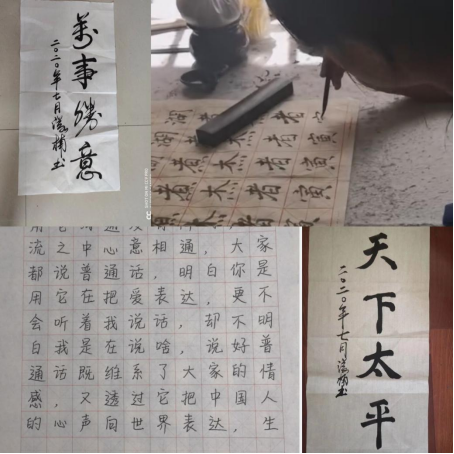 活动中,万象城娱乐awc线路将推普周宣传工作与语言文字日常工作有机结合,积极组织在校学生参加中华经典诵写讲大赛,通过诵读、讲解、书写、篆刻等语言文字表现形式,弘扬中华优秀语言文化,提升广大学生的语言文字应用能力和语言文化素养,营造亲近中华经典、热爱中华经典的社会氛围。以推普周为契机,开展经典诵读活动展示,全院学子积极响应,通过录音、录像等方式,完成语言文字答题挑战、成语接龙、中外名著的片段朗诵等多种线上活动。鼓励学生通过微信、微博、抖音等新媒体平台发布推广本次普通话活动的相关视频及推文。同时,号召爱好书法的同学通过作品撰写来吸引更多同学感受到中国文字的独特魅力,提升宣传集聚效应,体现推普精准度与实效性,促进推普活动融入学生的日常生活之中。