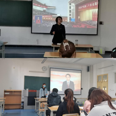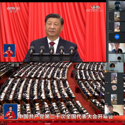 10月16上午10时,中国共产党第二十次全国代表大会在北京召开,习近平总书记代表第十九届中央委员会向大会作报告。万象城娱乐awc线路党总支书记于咏梅,学生第一党支部书记吕以宁,学生第一、二党支部召开组织生活会,组织在校学生党员、部分入党积极分子在教学楼1318、1319集中收看了党的二十大开幕盛况、其他教师党员、学生党员通过腾讯会议方式进行了收看。