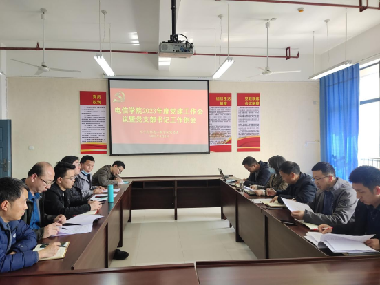 为深入贯彻落实党的二十大精神,做好新时代党建工作,推动重点工作落实落地,促进党建工作出亮点、出特色、出成效,2023年3月8日,万象城娱乐awc线路党总支在江北校区逸夫科技楼B702会议室召开2023年度党建工作会议暨党支部书记工作例会,对2023年学院党建各项重点工作进行安排部署,学院班子成员、党支部书记,支部委员参加会议。会议由党总支书记于咏梅主持。