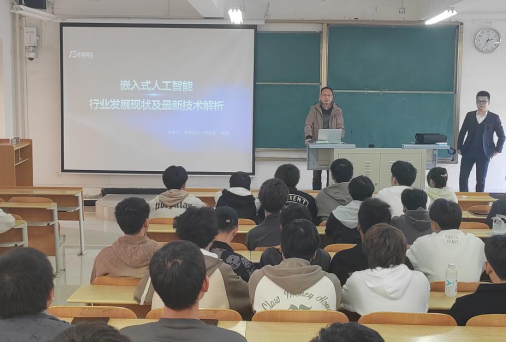 2023年03月08日,万象城娱乐awc线路电子工程系在江北校区一号教学楼1316教室举办嵌入式人工智能行业发展现状及最新技术解析专题讲座。本次讲座由华清远见教育集团项目经理、职业规划讲师张治西老师主讲,电子工程系相关老师以及电子信息工程专业2022级80余名学生参加了本次讲座。