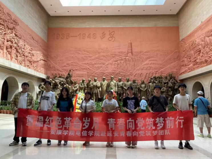 延安是中国革命圣地,是中华人民共和国的摇篮,习近平总书记在陕西考察时强调“延安精神培育了一代代中国共产党人,是我们党的宝贵精神财富。”为了持续推进主题教育走深走实,深入学习贯彻习近平关于教育的重要论述和来陕考察重要讲话精神,用延安精神教育引导党员师生滋养初心、淬炼灵魂,汲取信仰力量,坚定理想信念;为了用“五色”育人模式的实践与创新推进习近平新时代中国特色社会主义思想落地生根,真正实现“党旗红”引领“科技蓝”,2023年7月4日至7日,电子与信息工程学院党总支下设学生一、二党支部组织部分学生党员前往宝塔山、延安革命纪念馆、王家坪革命旧址、杨家岭革命旧址、枣园革命旧址、张思德广场、南泥湾、梁家河、延安大学进行实地参观学习,共同重温红色记忆,激发广大青年立志中华民族复兴的信心和决心。此次活动由党总支组织委员成英丽带队,8名学生党员参加。