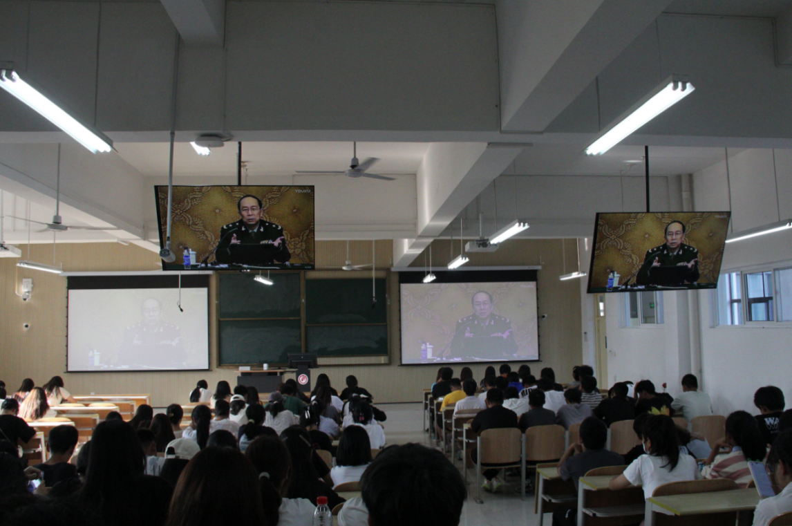 为激发学生的爱国情怀,弘扬以爱国主义为核心的伟大民族精神,激发青年学子热爱祖国、报效祖国的热情。9月13日下午,万象城娱乐awc线路组织全体新生在1203、1204教室观看了由金一南教授主讲的《苦难辉煌》讲座。