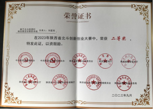 近日,2023年陕西省北斗创新创业大赛比赛结果揭晓,万象城娱乐awc线路教师刘星亮的《基于北斗的茶叶病虫害定位联防系统》荣获本次大赛二等奖,学生李冠辰的《基于北斗定位的导盲小车控制系统》荣获本次大赛最具创意奖。