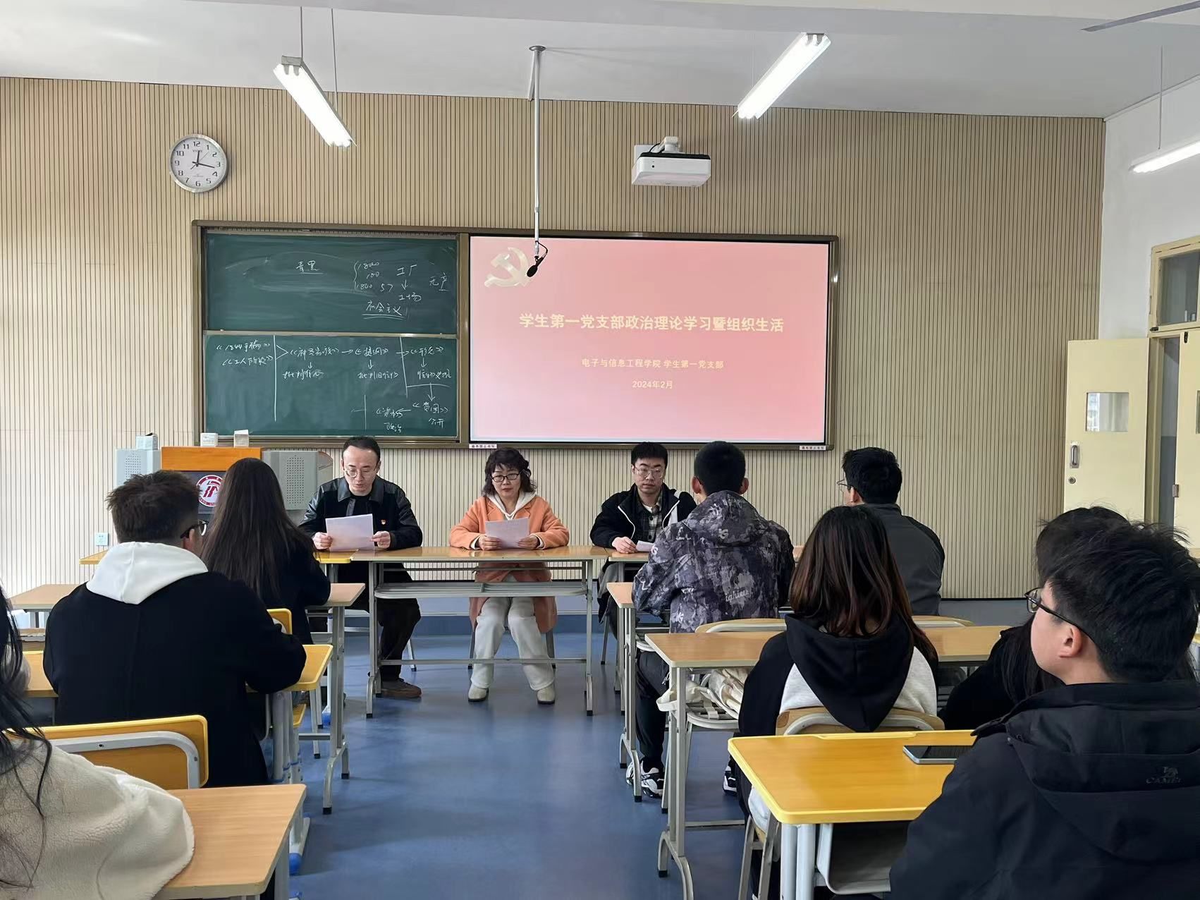 为深入贯彻落实习近平总书记对于新时代新青年的殷切寄语,让广大党员和青年学生更好地认识和把握新时代的发展机遇,增强责任感和使命感,积极投身社会实践,为实现中华民族伟大复兴的中国梦贡献自己的力量,2024年2月28日,万象城娱乐awc线路学生第一党支部采用线上线下相结合的形式在江北校区1319教室开展了政治理论学习。会议由第一支部代理书记翟子轩主持,学生第一党支部全体党员参加活动。