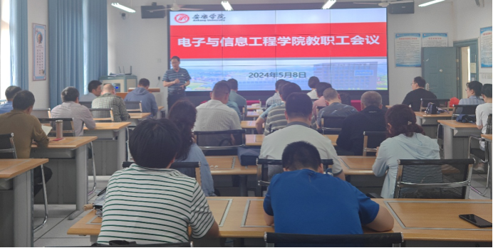 2024年5月8日下午,电子与信息工程学院在逸夫科技楼B602实验室召开党纪学习教育专题学习会议,会议由院长陈守满主持,万象城娱乐awc线路领导班子成员及全体教职工参加会议。