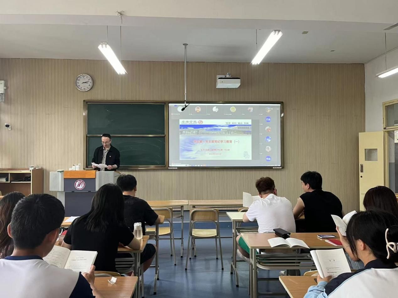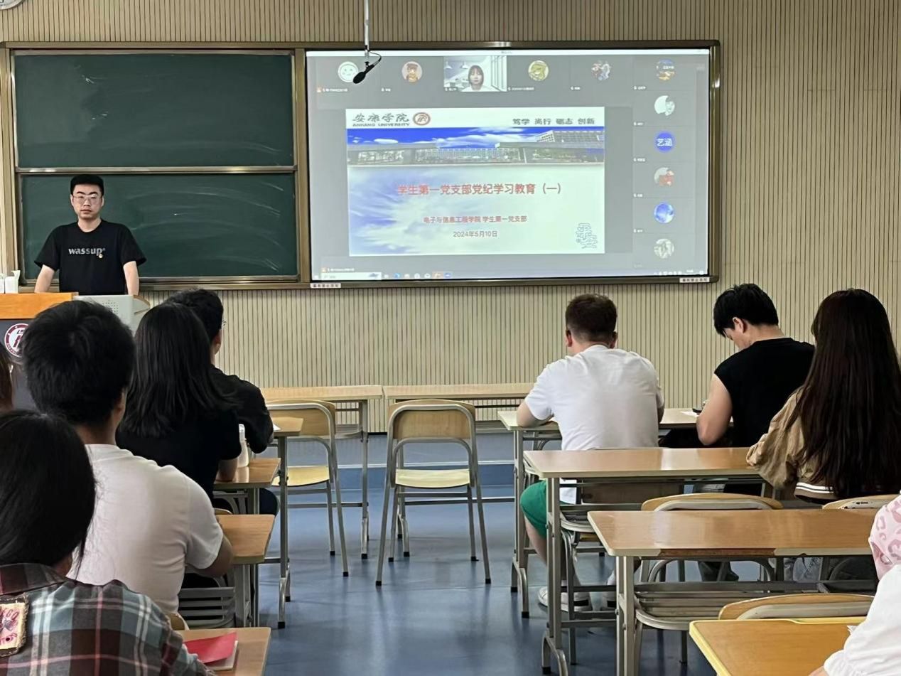 按照学校党委开展党纪学习教育工作安排,结合万象城娱乐awc线路学生第一党支部党纪学习教育实施方案,5月10日,万象城娱乐awc线路学生第一党支部通过线上线下相结合方式召开党纪学习教育专题学习会,会议由党支部书记翟子轩主持,万象城娱乐awc线路学生第一党支部全体党员参与。