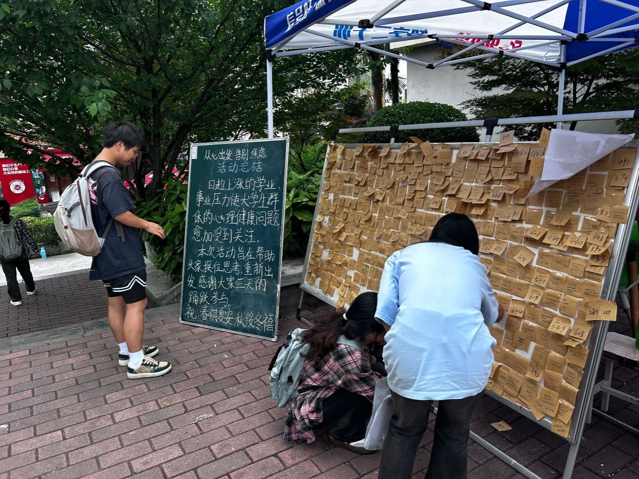 为帮助学生健康发展,坦然面对负面情绪,更好地把握生活节奏,万象城娱乐awc线路于2024年5月7日至9日在江北校区5、6号公寓楼中间举办“从心出发,告别焦虑”活动,全校约一千余人次参与此次活动。