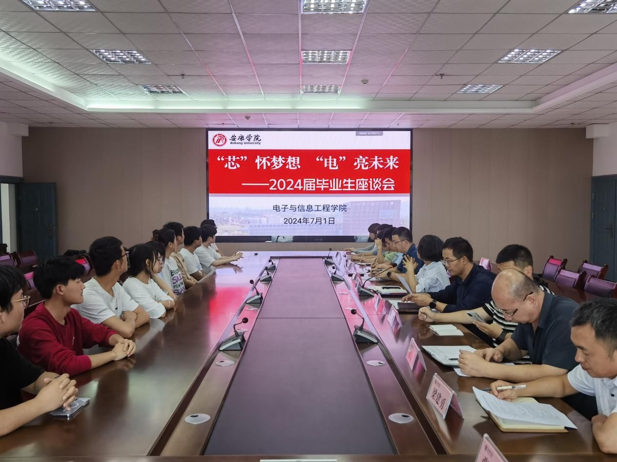 为给即将离校的毕业生们提供一个交流与分享的平台,同时倾听他们对学校教育教学工作的意见和建议。7月1日,电子与信息工程学院召开以“‘芯’怀梦想 ‘电’亮未来”为主题的2024届毕业生座谈会。学院党总支书记于咏梅,副院长王克刚、宋权华、党总支副书记蔡正旺、两办办主任、各系主任、毕业班辅导员及2024届毕业生代表参加会议,会议由于咏梅主持。