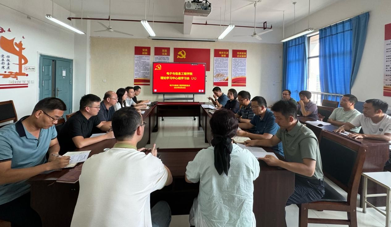 8月30日,电子与信息工程学院理论学习中心组召开2024年第八次政治理论学习会,中心组全体成员参加学习会,学习会由党总支书记于咏梅主持。