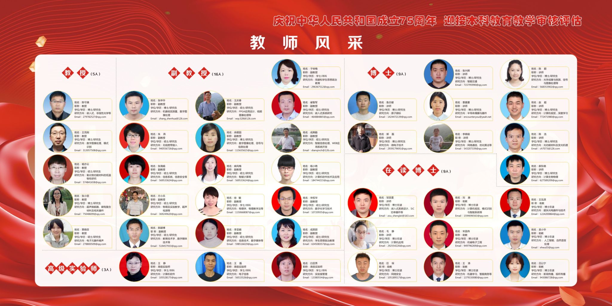 第二块展板向新生及家长介绍了学院教授、副教授、高级实验师、博士及在读博士的基本情况及研究方向。
