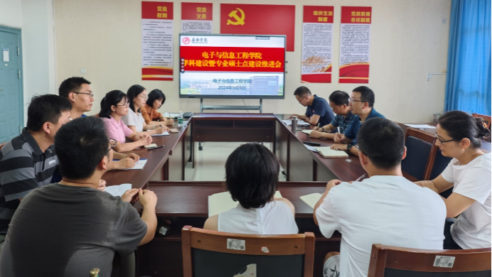 2024年9月9日上午,电子与信息工程学院在逸夫科技楼B702召开学科建设暨专业硕士点建设推进会,会议由副院长王克刚主持,院长陈守满、副院长宋权华及电子系、计算机系相关教师参加会议。