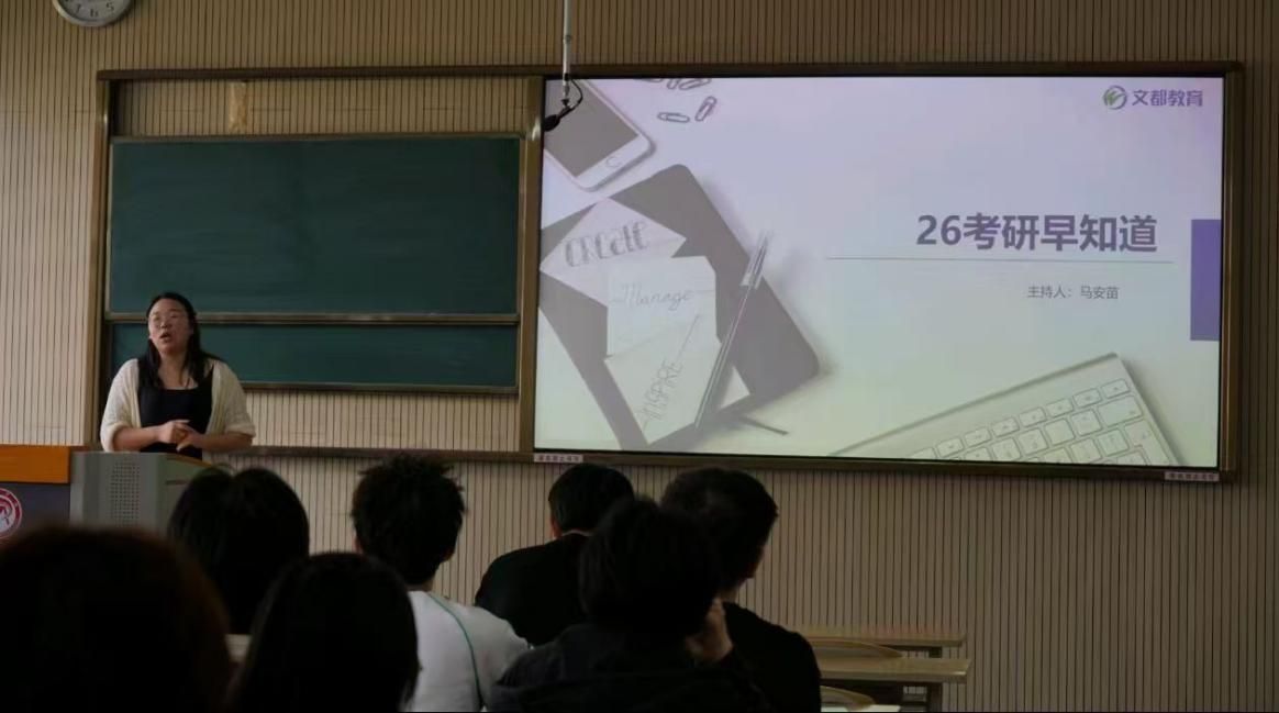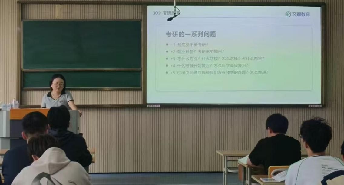 为帮助学生了解考研最新形势、明确考研复习方向,做好考研规划,切实提升学院的备考效率和“上岸率”,10月16日14:30,电子与信息工程学院在江北校区1320教室举行了题为“2026考研早知道”的考研专题讲座。本次讲座由文都教育的刘丹老师主讲,2022级拟考研学生参加。
