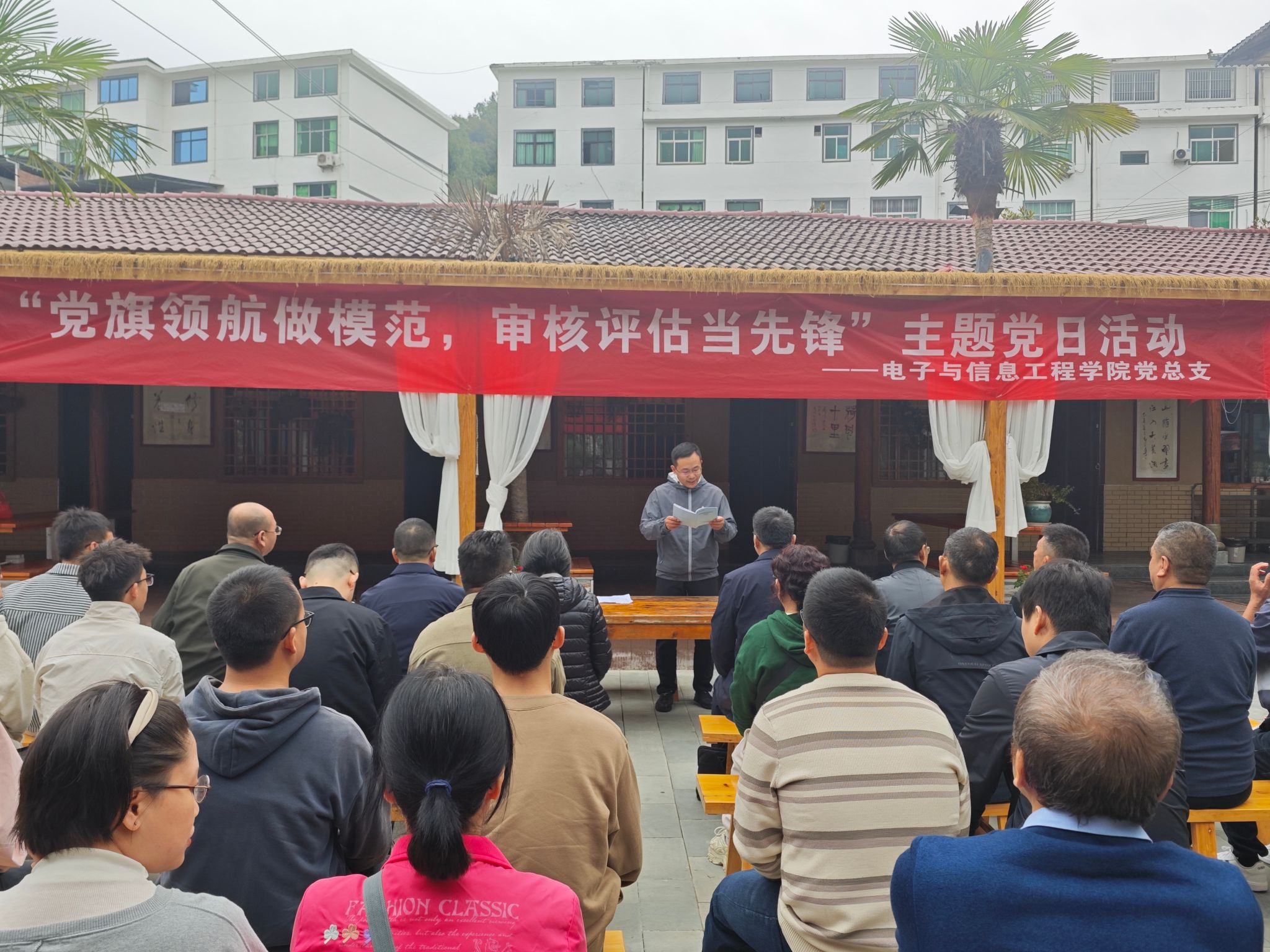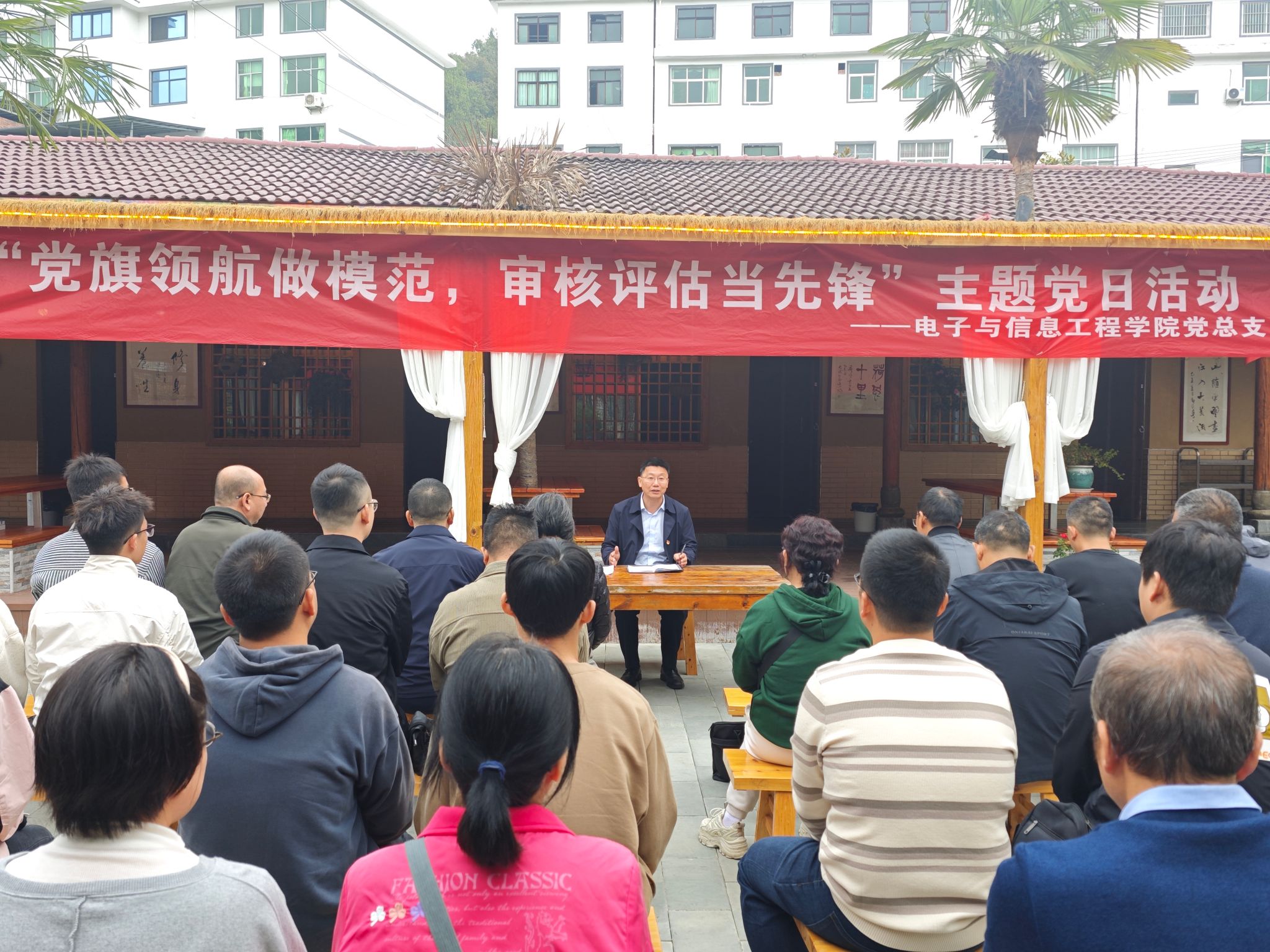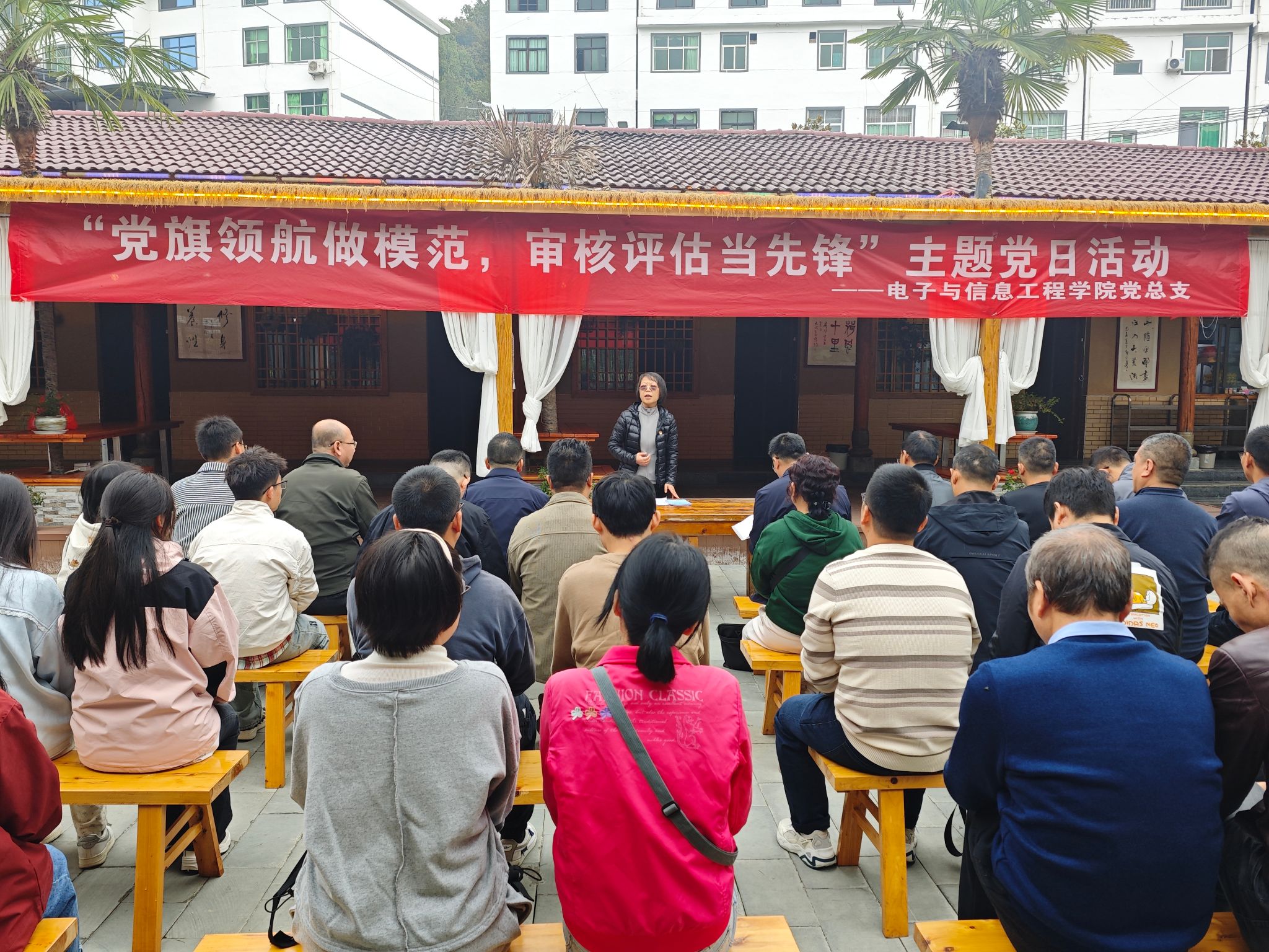 为有效推进学校本科教育教学审核评估工作顺利进行,坚持以评促建、以评促改、以评促管、以评促强,用评估标准来规范日常工作和管理服务行为,在评估工作中充分发挥党员模范带头作用。2024年10月26日,电子与信息工程学院党总支开展“党旗领航做模范,审核评估当先锋”主题党日活动,学校党委副书记张东红,电子与信息工程学院党总支下设四个党支部所属党员及教职工、部分学生党员参加,活动由党总支书记于咏梅主持。