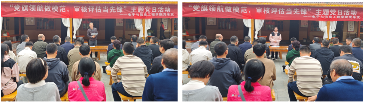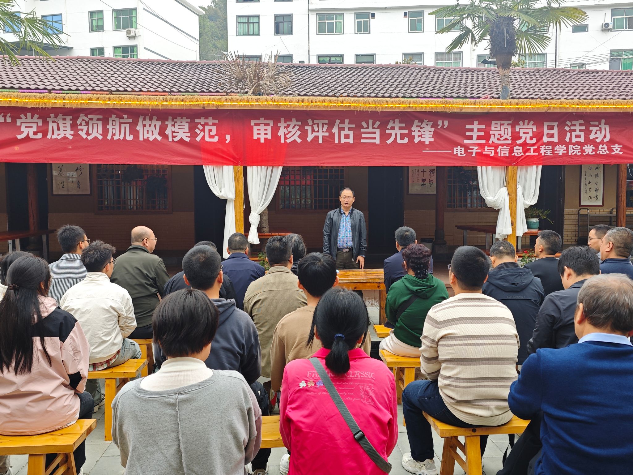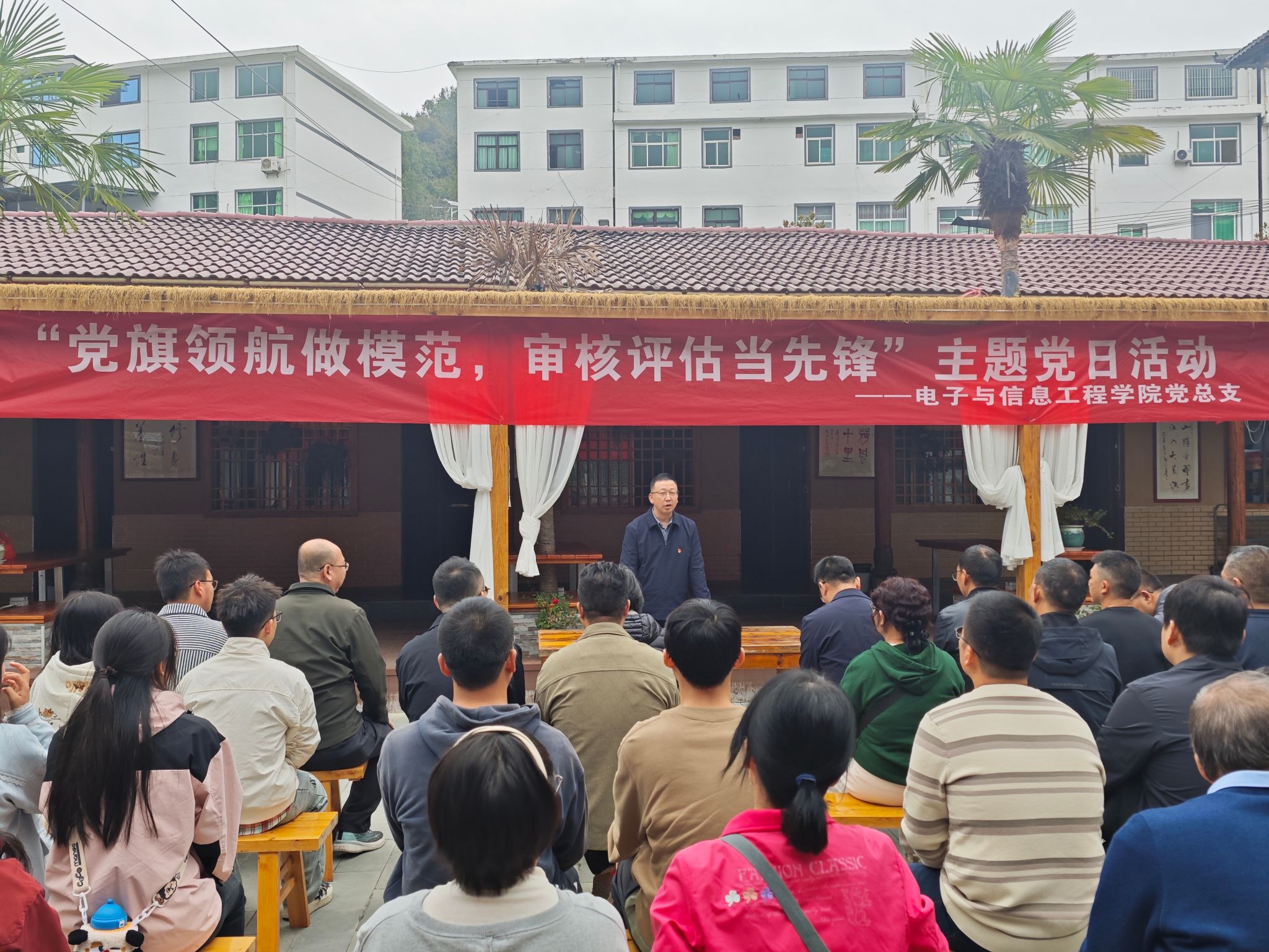 为有效推进学校本科教育教学审核评估工作顺利进行,坚持以评促建、以评促改、以评促管、以评促强,用评估标准来规范日常工作和管理服务行为,在评估工作中充分发挥党员模范带头作用。2024年10月26日,电子与信息工程学院党总支开展“党旗领航做模范,审核评估当先锋”主题党日活动,学校党委副书记张东红,电子与信息工程学院党总支下设四个党支部所属党员及教职工、部分学生党员参加,活动由党总支书记于咏梅主持。