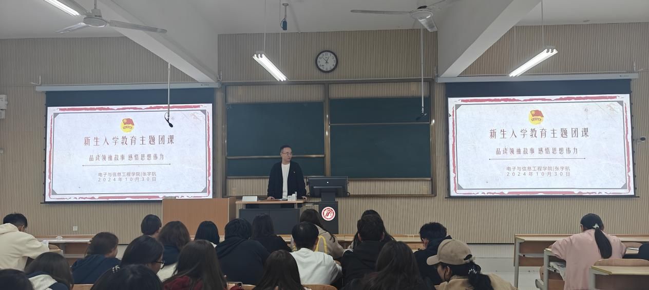 进一步深刻领会习近平总书记关于青年工作的重要思想,牢记习近平总书记对于青年们的殷切嘱托,培育“芯”青年深厚的家国情怀,10月30日,电子与信息工程学院团总支书记张宇航以“品读领袖故事 感悟思想伟力”主题为2024级全体学生讲授了一堂入学教育主题团课。