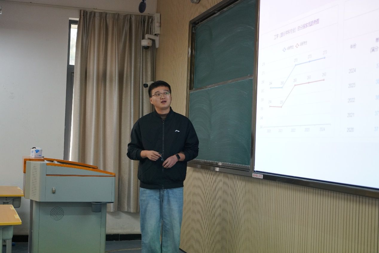 讲座伊始,贾金兵老师首先结合近年来的考研情势,通过数据演示,深入分析、详细解读电子通信类专业、管理学类专业考研情况,让大家更加清晰地了解各院校考研的招生政策、难易程度和录取比例,助力同学们理性精准择校。