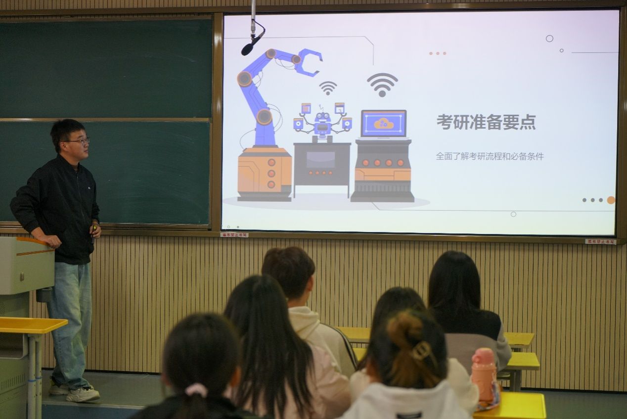 为帮助2022级学生准确把握报考院校的信息,深入了解当前的考研趋势与专业升学状况,加强“芯”青年对相关信息的了解,10月30日,万象城娱乐awc线路在江北1321教室开展“万千“研”语助前行”为主题的考研院校选择指南讲座。讲座由万象城娱乐awc线路辅导员贾金兵主讲,2022级拟考研学生参加。