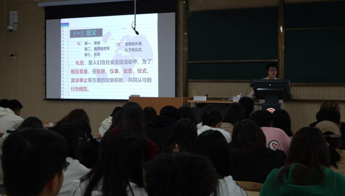 讲座之初,成英丽以校园文明礼仪方面的不良现象为切入点,就礼仪的含义、重要性展开讲述。她从学校生活礼仪、服饰礼仪、仪表礼仪、仪态礼仪、交往礼仪等方面为同学们详细地介绍了校园文明礼仪的注意事项。她讲到:文明礼仪可以帮助同学们与他人建立良好的人际关系,促进大学生身心健康,增强大学生人文素养,提高大学生的思想道德素质。