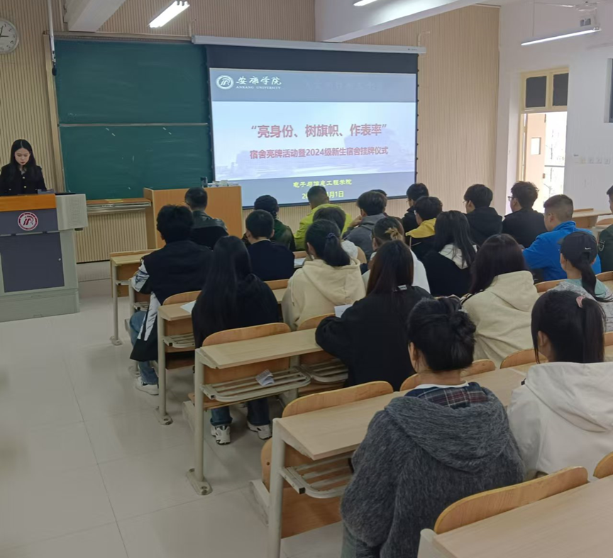 学生宿舍是高校思想政治教育和文化育人的重要阵地,为充分发挥党团组织的战斗堡垒作用和学生党员、团员青年的模范带头作用,11月1日下午,电子与信息工程学院顺利完成了“亮身份,树旗帜,做表率”宿舍亮牌活动暨2024级新生宿舍挂牌工作。